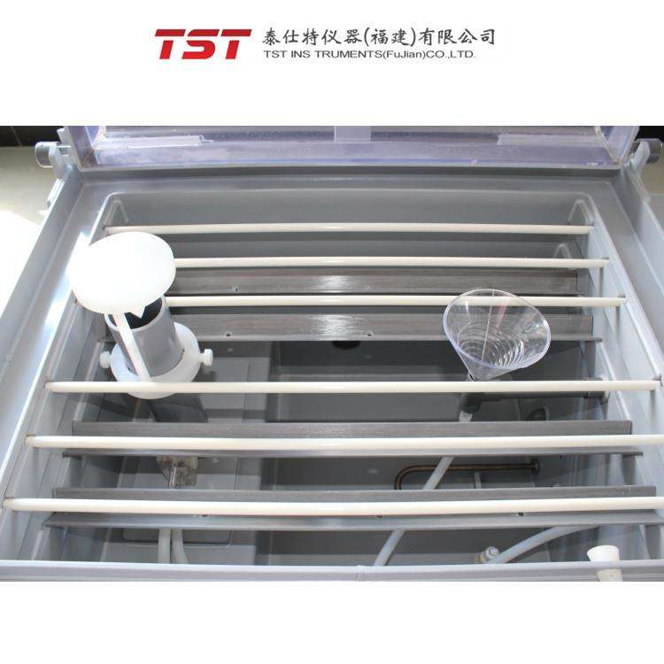 4、試驗室采用蒸汽直接加溫方式,升溫速度快且均勻,減少待機時間,長期運轉(zhuǎn)不飄溢,水密閉結(jié)構(gòu),無鹽霧益出。(可選氣動撐桿,不要氣源開閉箱蓋輕松自如)
