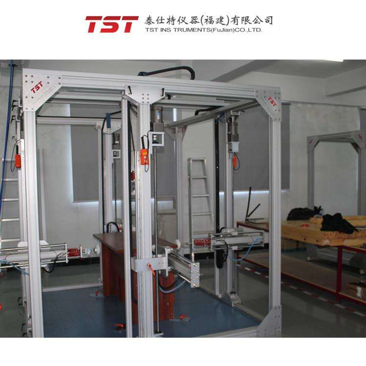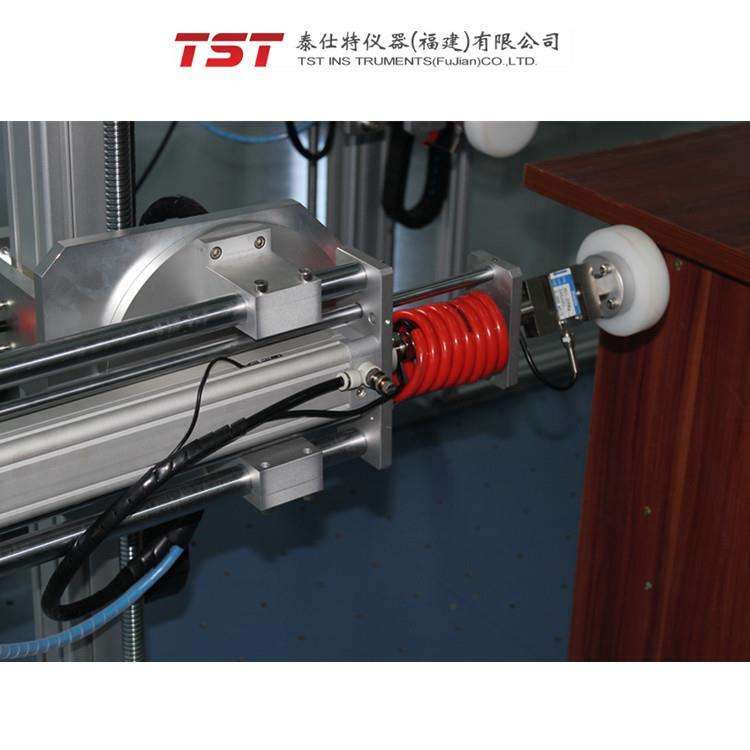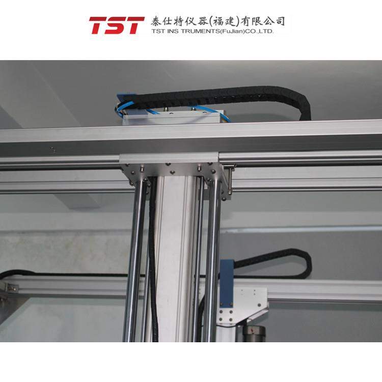 6)、TST 三軸移動(dòng)技術(shù),上方測(cè)試通道可以在左右、前后、上下 3 軸移動(dòng),簡(jiǎn)單的說(shuō)即可以讓機(jī)型內(nèi)部任意擺放的符合測(cè)試標(biāo)準(zhǔn)的家具上的任意一個(gè)點(diǎn)受力測(cè)試,對(duì)桌柜的擺放位置要求更低,節(jié)省人工操作,簡(jiǎn)單有效。全部采用電動(dòng)調(diào)節(jié)無(wú)需人工。
