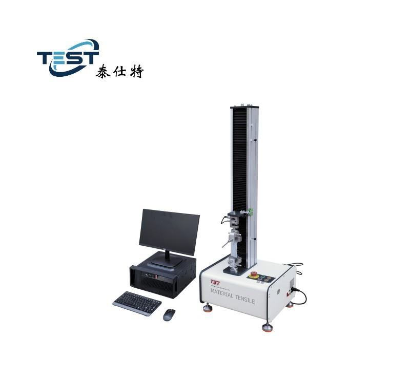 電腦式單柱材料拉力機用途廣泛,更換不同夾具可測試各種紡織材料及鞋底、輪胎、橡膠管、三角膠帶、塑料布、塑料板、包裝用薄膜、亞克力、FRP、ABS、EVA、PV等成品、半成品或啞鈴狀試片之抗拉強度、伸長、撕裂、膠著力、抗拉應力、剝離、剪力、橡膠與金屬之黏接力。